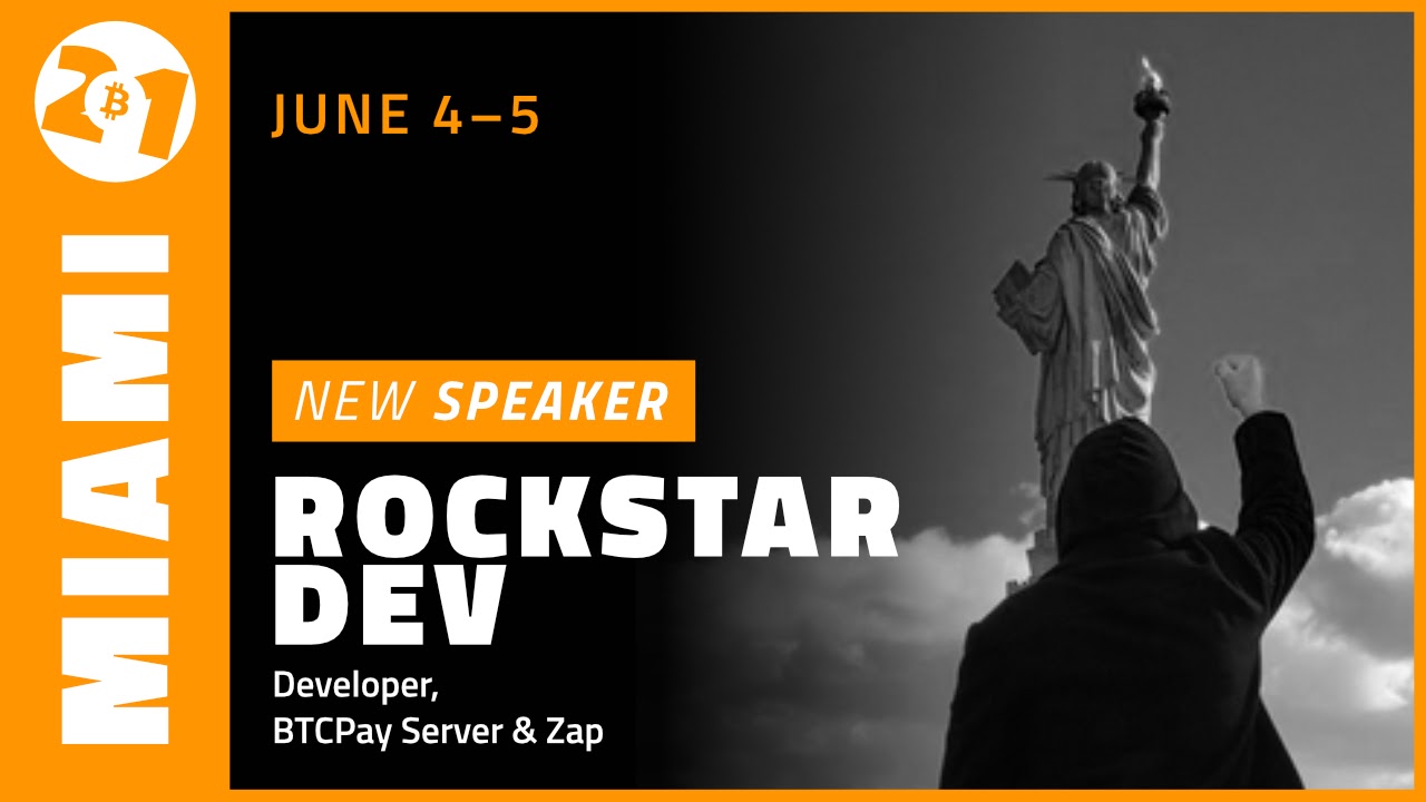 R0ckstarDev will be speaking during the Bitcoin 2021 conference in Miami on June 4 and 5. Make sure that you set a reminder for the Bitcoin 2021 day one YouTube live stream and one for the Bitcoin 2021 day two YouTube live stream now.