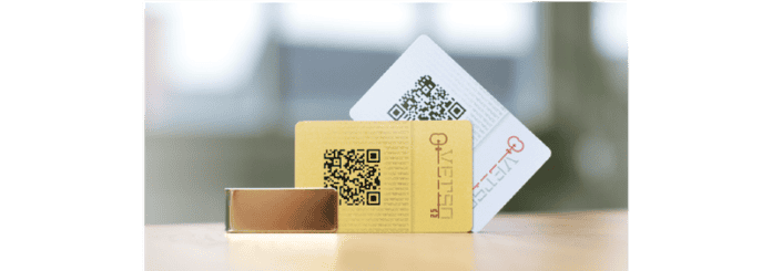 Both sides of the card look identical, however they are subtly different. The portion with the QR code is printed with a textual texture. On one side it says “PUBLICPUBLICPUBLIC” and on the other “PRIVATEPRIVATEPRIVATE” such that it attractively creates a texture. It actually looks pretty good and has a nice functional design.